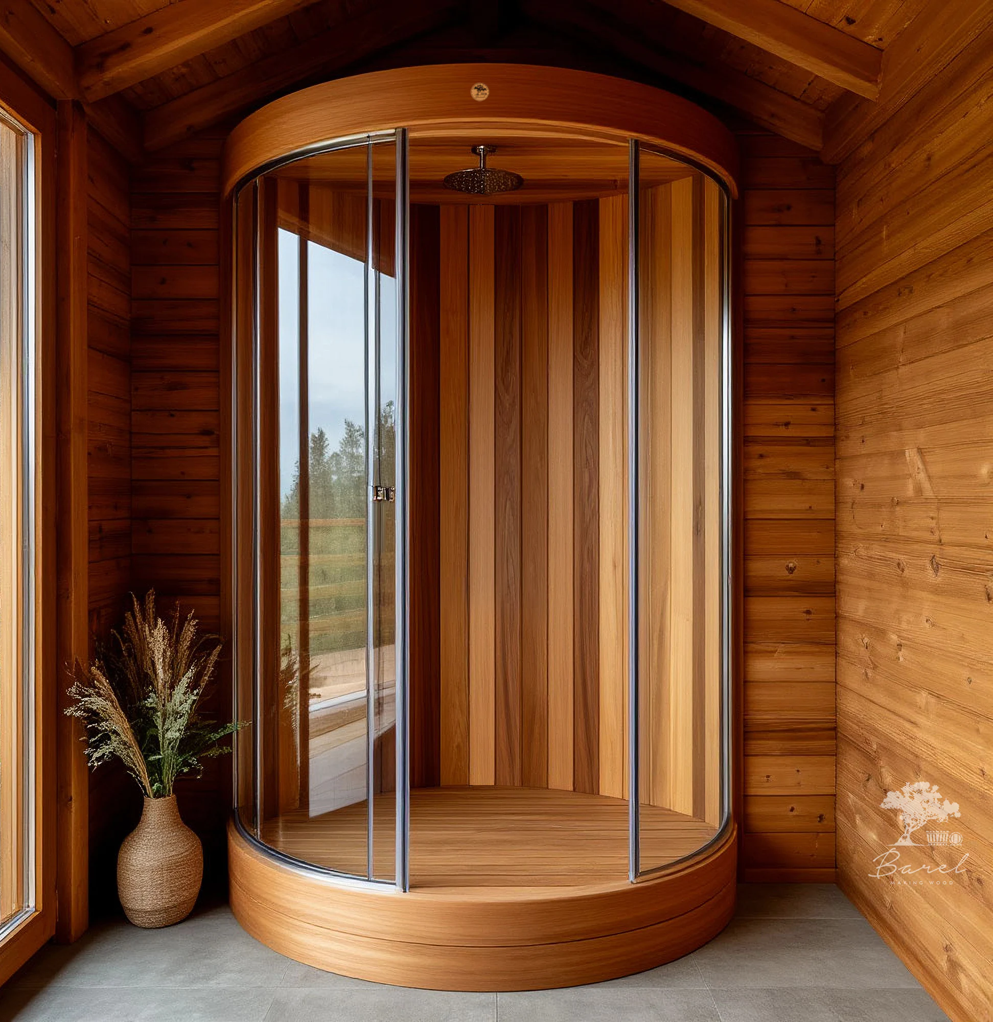 Изготовление душевых кабин из элитной древесины высшего качества на заказ любых форм и размеров!